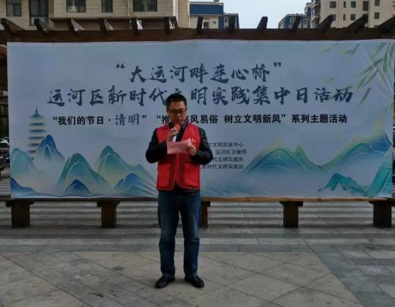 4月3日,“大運(yùn)河畔連心橋”運(yùn)河區(qū)新時(shí)代文明實(shí)踐集中日暨“我們的節(jié)日·清明”“推動(dòng)移風(fēng)易俗 樹(shù)立文明新風(fēng)”主題活動(dòng)在塞納左岸小區(qū)廣場(chǎng)成功舉辦,本次活動(dòng)由運(yùn)河區(qū)新時(shí)代文明實(shí)踐中心主辦,運(yùn)河區(qū)文明辦、運(yùn)河區(qū)衛(wèi)健局、南環(huán)街道新時(shí)代文明實(shí)踐所、棉紡社區(qū)新時(shí)代文明實(shí)踐站承辦。