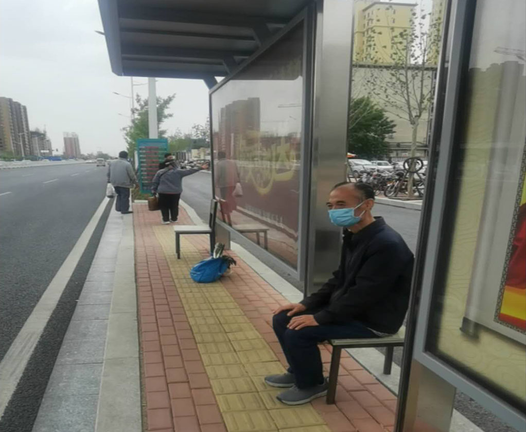 有一次,一位等車的老人坐在非機動車道南面的健身器材上等車。武玉華看到后,擔心一會兒車來了老人趕不過去,便將一把椅子搬到站臺上,讓老人坐下等車。