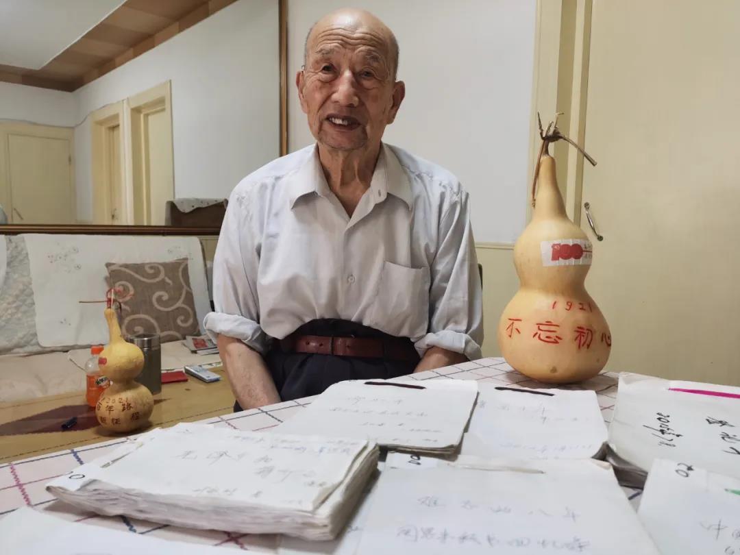 目前,老人兒孫滿堂,家人13口,有7名是共產(chǎn)黨員。建黨100周年之際,老人把“不忘初心 牢記使命”刻在了葫蘆上珍藏。老人想把這30年的紅色剪報(bào)捐獻(xiàn)出來(lái),讓更多人了解黨史、學(xué)習(xí)黨史,把最動(dòng)聽的紅色故事講給大家聽。