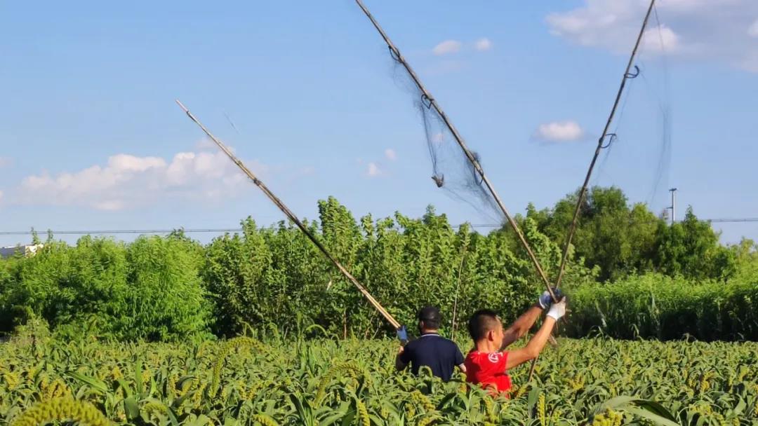放鞭炮、敲臉盆……能用的辦法都用過(guò)了,情況依然沒(méi)有改善。后來(lái),楊維爭(zhēng)便在自家果園里用上了傳統(tǒng)的粘鳥(niǎo)網(wǎng)。