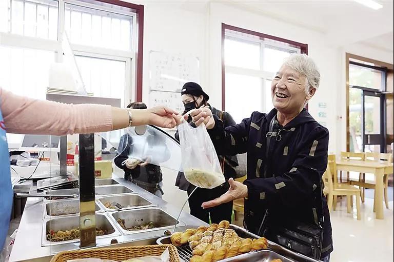 自從有了社區(qū)助老食堂,胡玉娥老兩口的午餐經常在食堂解決?!白约鹤龅冒胩?,麻煩又吃不多少,還不如在食堂買點,省時又省力。”胡玉娥說,社區(qū)食堂提供的套餐非常實惠,低鹽低糖,有葷有素,每天都不重樣,很受老人們歡迎。