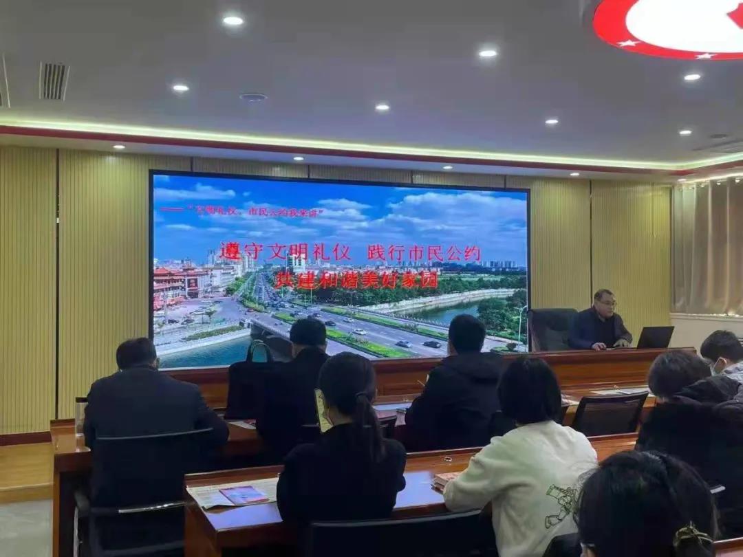 11月26日下午,市委市直機(jī)關(guān)工委依托基層黨務(wù)干部能力提升專項(xiàng)行動(dòng)周末課堂,開展“文明禮儀 市民公約我來講”活動(dòng)。市委市直工委宣傳部負(fù)責(zé)人圍繞《滄州市民文明手冊》就時(shí)代理論、創(chuàng)城知識(shí)、文明引導(dǎo)、禮儀知識(shí)、便民服務(wù)等內(nèi)容進(jìn)行詳細(xì)講解,并領(lǐng)學(xué)了滄州市民公約內(nèi)容,對講好“五句話”、做好“十個(gè)不”進(jìn)行宣傳,進(jìn)一步大力營造創(chuàng)建文明城市、提升市民素質(zhì)的濃厚氛圍?;顒?dòng)開始前,工委宣傳部向參加活動(dòng)的黨務(wù)干部發(fā)放《滄州市民文明手冊》50份,發(fā)放《滄州市創(chuàng)建全國文明城市應(yīng)知應(yīng)會(huì)》宣傳活頁50份。