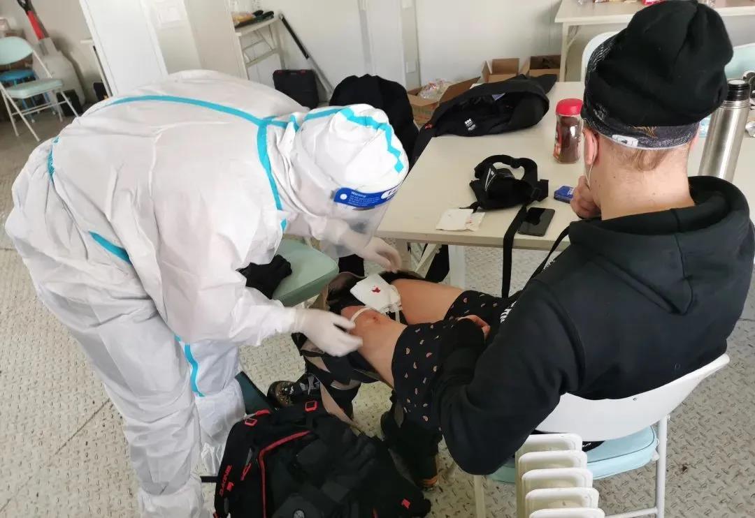 由于疫情原因,邱磊磊和同事工作時要做到“二級防護”,全程穿防護服操作。邱磊磊說:“工作時我們嚴格按照工作要求操作,但是雪上救援時,除了技能之外,隨時準備、快速行動,是對醫(yī)護人員救援工作很重要的要求?!痹诤涮鞖庵校坏┯腥蝿?,要求醫(yī)護人員在極短的時間內(nèi)到達,并進行驗傷、救治和固定等工作,然后把傷者拉回醫(yī)療站進一步進行檢查治療。