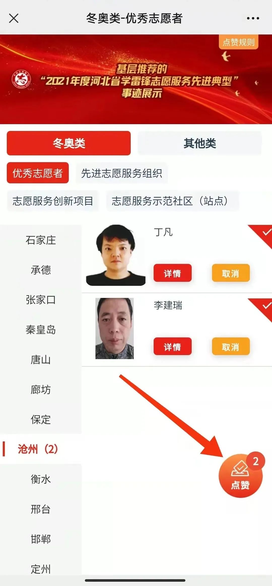 3月4日,由中共河北省委宣傳部、中共河北省委組織部、河北省文明辦、河北省第24屆冬奧會工作領(lǐng)導(dǎo)小組辦公室等22家部門和單位共同組織開展的“2021年度河北省學(xué)雷鋒志愿服務(wù)先進(jìn)典型”宣傳推選活動進(jìn)入展示點贊環(huán)節(jié)。網(wǎng)友可于3月4日上午10時至3月15日上午10時,為入選的滄州學(xué)雷鋒志愿服務(wù)先進(jìn)典型點贊。