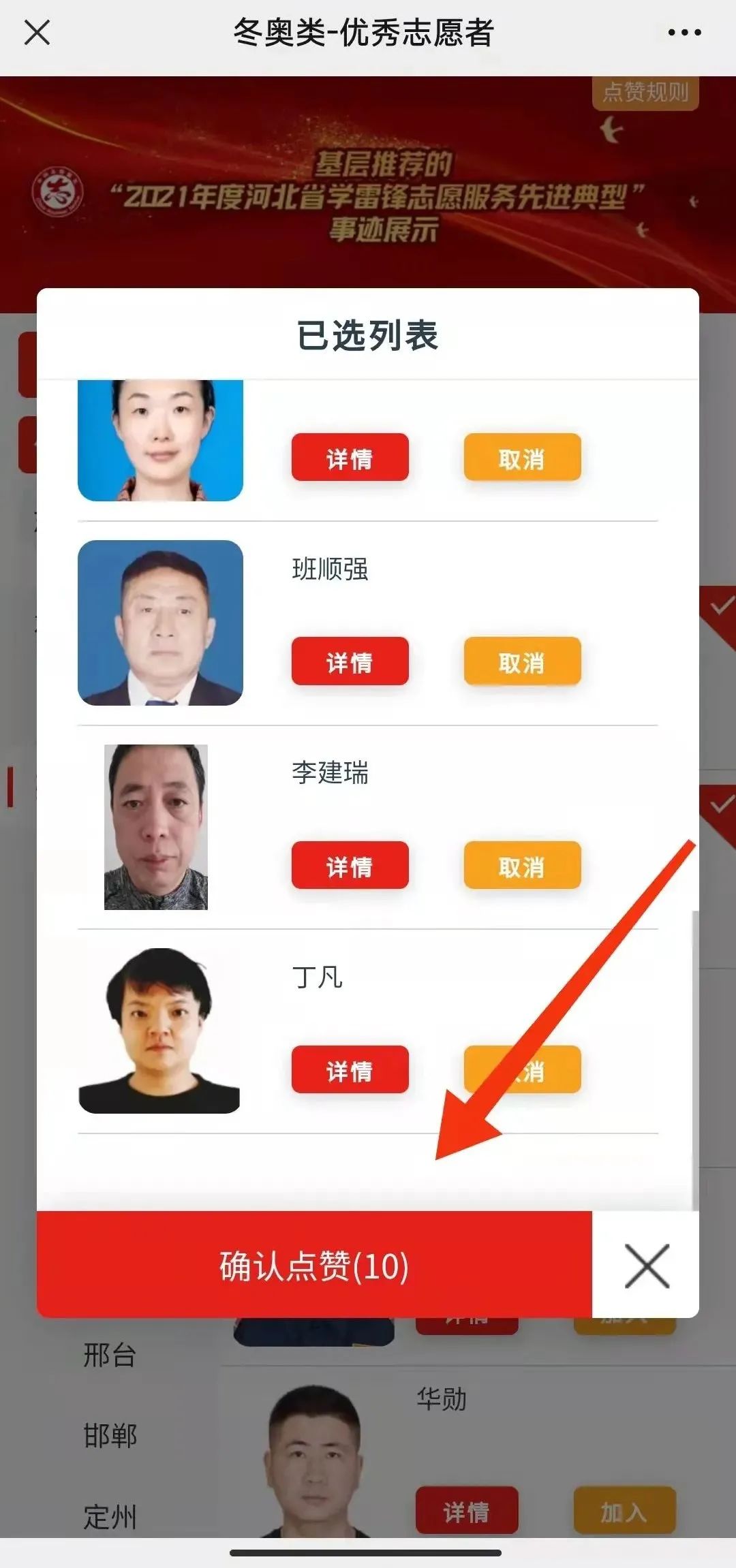 6、選擇最少10位候選人,點擊“確認(rèn)點贊”