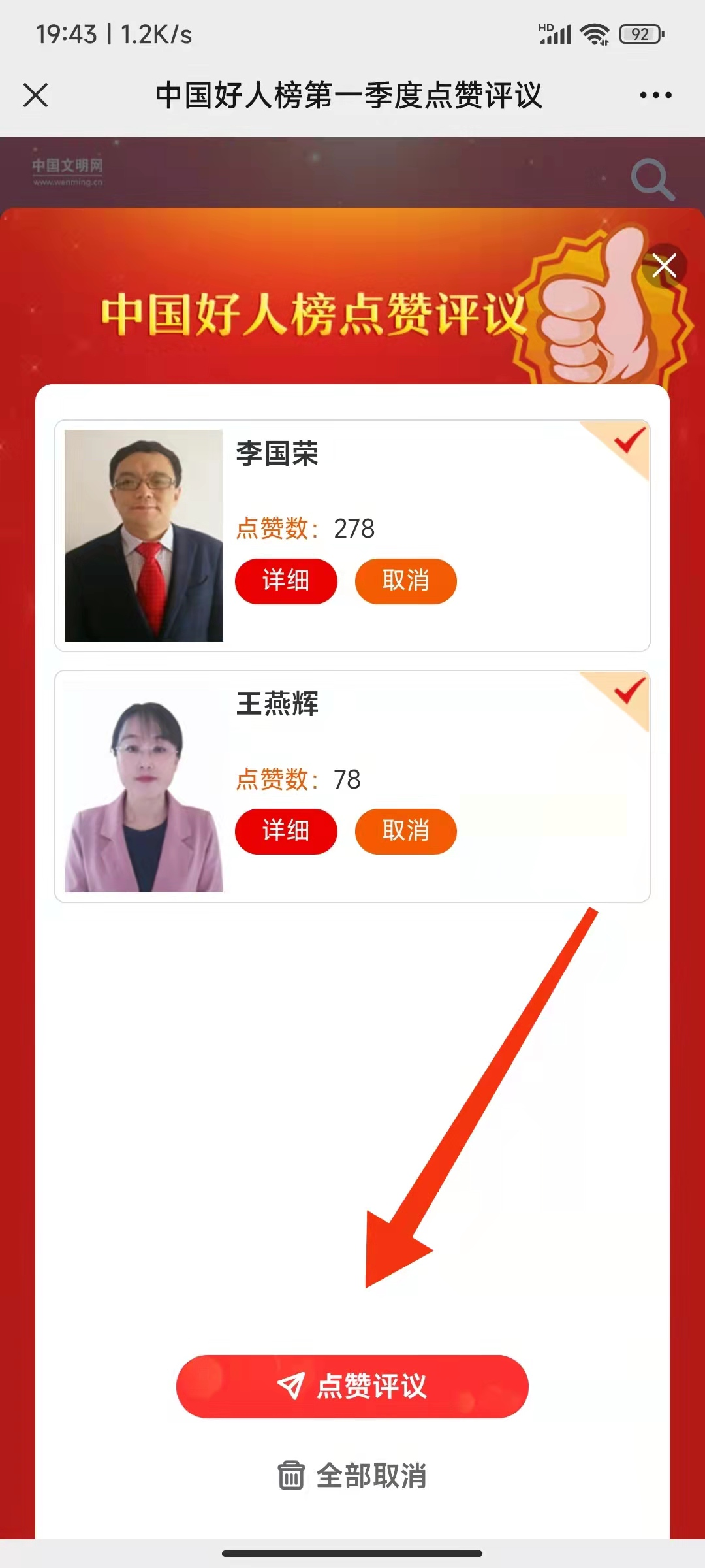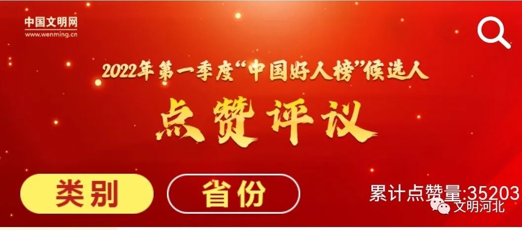 近日,由中央文明辦主辦、中國文明網(wǎng)承辦的“我推薦我評議身邊好人”活動2022年第一季度網(wǎng)絡點贊評議正式開始。河北共有6人被推選為第一季度“中國好人榜”候選人,其中我市李國榮、王燕輝榜上有名。