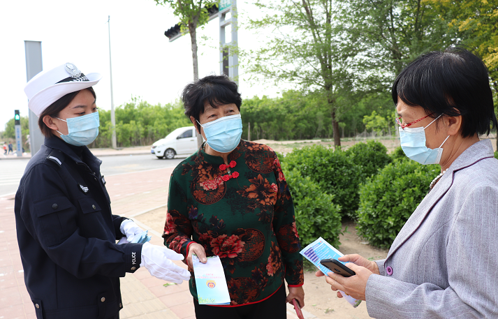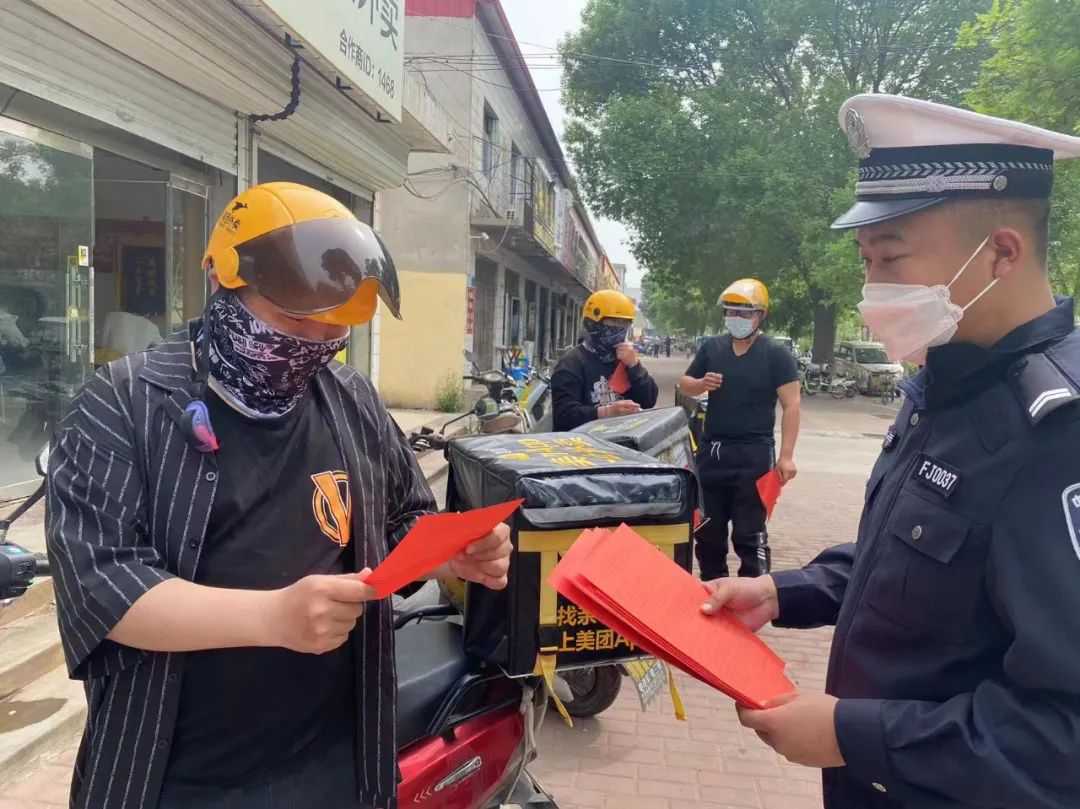 執(zhí)勤交警在路口向騎乘電動自行車的群眾發(fā)放宣傳材料,耐心地向群眾講解電動自行車上牌的相關(guān)政策,詳細解答群眾提出的相關(guān)問題。同時,提醒群眾駕乘電動自行車一定要規(guī)范佩戴安全頭盔,不逆行、不闖紅燈、不越線停車,確保行車安全,自覺抵制交通陋習。