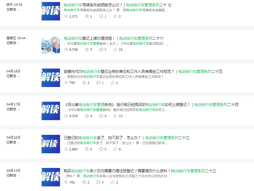 充分利用官方微信、微博、抖音等各類媒介平臺,積極開展電動自行車登記掛牌宣傳工作,及時宣傳電動自行車登記掛牌的目的及意義,提高廣大群眾對該項工作的知曉率。