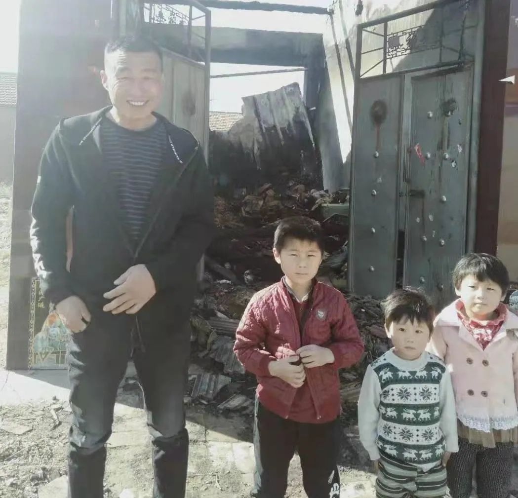 那一天,前褚村村民王貞香像往常一樣外出巡查天然氣管道安全,將幾個孫輩反鎖在家中。其中一個孩子玩打火機不慎引燃院內(nèi)柴草,緊接著火光冒起,火勢迅速蔓延,濃煙裹著火苗沖進屋內(nèi)。老大冒火跑出屋子去求救,但因為大門反鎖,沒辦法出門,只能用力地敲擊大門。聽到呼喊的褚玉鵬在村民合力幫助下,翻進院墻。那時,幾間屋子全部被濃煙籠罩,屋門處的火勢更大。