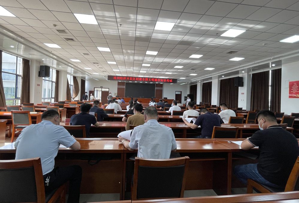 為深入開展創(chuàng)建全國文明城市工作,全面提升開發(fā)區(qū)干部群眾的創(chuàng)城業(yè)務(wù)能力和綜合素質(zhì),不斷提高創(chuàng)城工作的知曉率、支持率和參與率,營造濃厚的創(chuàng)城氛圍,5月17日下午,滄州經(jīng)濟(jì)開發(fā)區(qū)創(chuàng)城辦組織開展創(chuàng)建全國文明城市業(yè)務(wù)知識考試,綜合行政執(zhí)法局、社發(fā)局、經(jīng)發(fā)局、交警中隊(duì)、行政審批局、住建局、市場監(jiān)管分局、生態(tài)環(huán)境分局、學(xué)校等創(chuàng)城指揮部成員單位主要負(fù)責(zé)同志及工作人員共31人參加考試。區(qū)黨工委副書記馬國青、管委會副調(diào)研員于詠梅監(jiān)考。
