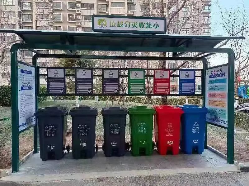 在綠之園小區(qū),記者看到了新建成的生活垃圾四分類亭,亭內(nèi)設(shè)有可回收物、有害垃圾、廚余垃圾、其他垃圾四類垃圾桶,每個垃圾桶都標(biāo)有垃圾分類詳細(xì)標(biāo)志,如“有害垃圾”投放口注明包括“蓄電池、含汞溫度計、廢油漆桶、過期藥物”等,“廚余垃圾”投放口注明包括“菜梗菜葉、剩菜剩飯、骨骼內(nèi)臟、果皮果殼”等,引導(dǎo)居民正確投放。
