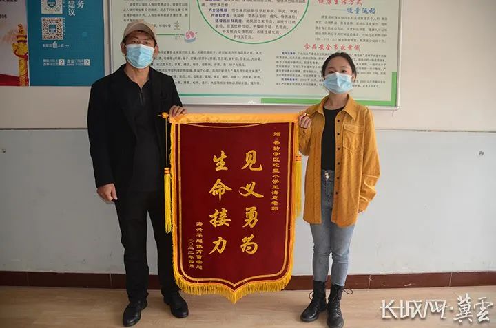 日前,海興縣香坊鄉(xiāng)曹某超來(lái)到香坊鄉(xiāng)坨里幼兒園,將一面寫有“生命接力 見義勇為”的錦旗贈(zèng)送給了王海意老師,感謝她在危急關(guān)頭施以援手,用實(shí)際行動(dòng)挽救生命。