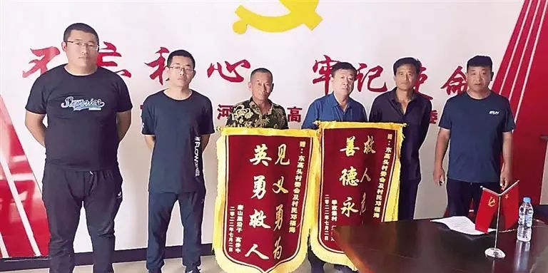 日前,為了表達謝意,高步中定做了一面錦旗,代表被救的7人送到了黃驊市東高頭村村委會,當面向鄧福海致謝。