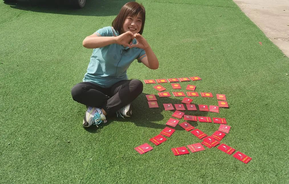 碧綠的草地上,小紅本拼成一個大大的“愛”字,一名身穿藍色T恤衫的女子坐在旁邊笑著用手比畫出“心”型。仔細一看才發(fā)現(xiàn),這些小紅本是48個獻血證。旁邊的女子叫孫真真,這些小紅本是她獻血7年的見證。