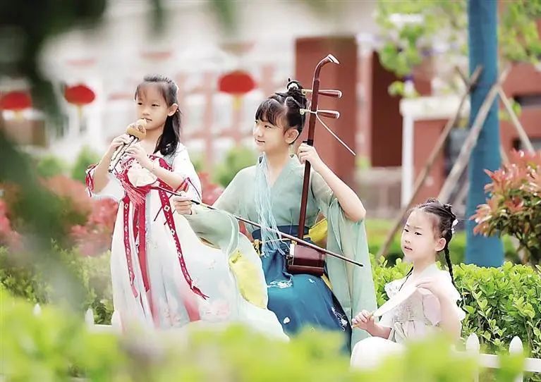 “五月五,是端午,背著竹簍入山谷。溪邊百草香,最香是菖蒲?!苯衲甓宋绻?jié)期間,市上海路小學(xué)的孩子們身著漢服,腰佩香囊,吟唱著端午童謠,縫制香囊,體驗投壺、套圈等傳統(tǒng)游戲,盡情感受傳統(tǒng)民俗魅力。