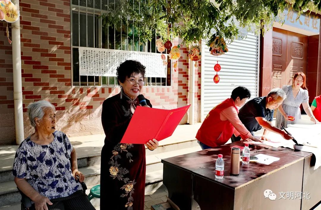 9月6日,在肅寧縣邵莊鄉(xiāng)邊寨村古槐樹下,一場(chǎng)別開生面的“中秋月 家鄉(xiāng)情 古槐樹下話文明”迎中秋主題活動(dòng)開展得如火如荼。古槐樹歷史故事解讀、家風(fēng)故事宣講、中秋詩朗誦、中秋趣味小游戲……活動(dòng)豐富多彩。書畫愛好者現(xiàn)場(chǎng)揮毫潑墨,將創(chuàng)作出的書畫作品送給道德模范、文明家庭等先進(jìn)個(gè)人或集體,參加活動(dòng)的老人現(xiàn)場(chǎng)品嘗水果月餅。