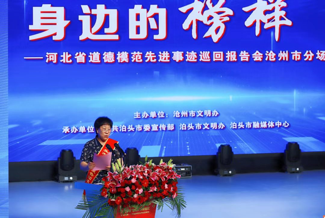 儀式現(xiàn)場,中國好人榜上榜好人李國榮,河北好人鈕俊玲、張運穎等3位泊頭市道德模范報告團成員分別做了助人為樂、孝老愛親、敬業(yè)奉獻(xiàn)的事跡報告。他們用一個個鮮活的故事詮釋了平凡的偉大,用一樁樁感人的事跡彰顯了道德的力量。