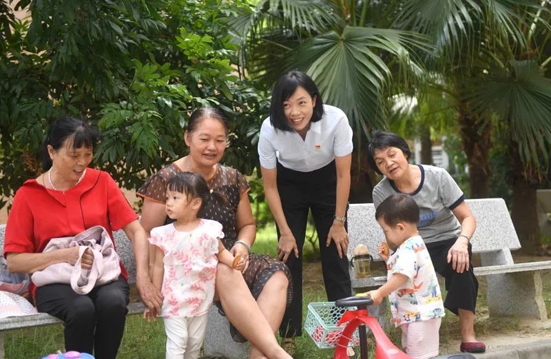 二十大代表、廣東省佛山市禪城區(qū)古灶村黨委書記、村委會主任陸秀興(右三)和村民在一起聊天(2022年9月7日攝)。新華社記者 盧漢欣