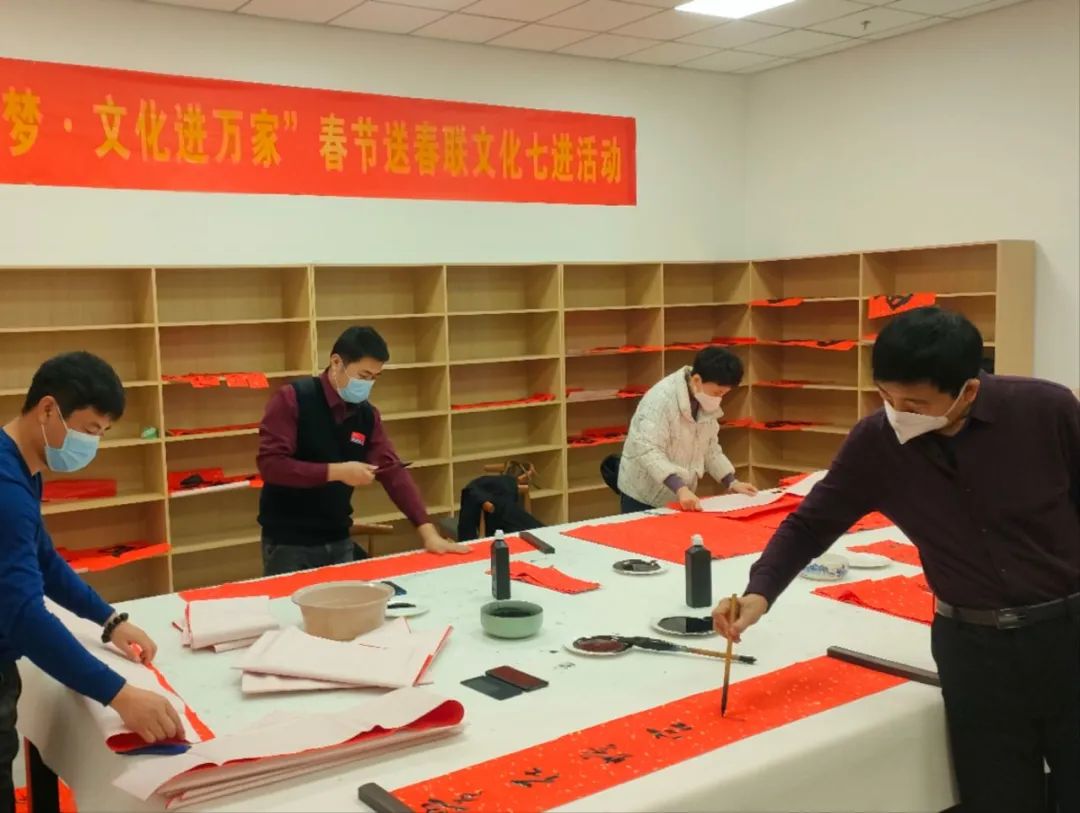天氣寒冷,黃驊市文化館活動室里卻暖意融融。當?shù)匚逦恢麜以缭缇蛠淼竭@里,準備紙張,擬定春聯(lián)內容。為困難群眾寫春聯(lián),他們格外用心。這些春聯(lián),不僅傳承著中國傳統(tǒng)文化,還飽含著他們對困難群眾的滿滿祝福?;顒又?,書法家們紛紛拿出自己的看家本事奮筆疾書,很快活動室里就紙墨飄香,桌上、地上、書架上都擺滿了春聯(lián)和“福”字,每一幅都洋溢著新氣息、飽含著新祝愿,為即將到來的春節(jié)增添了濃濃的喜慶氛圍。