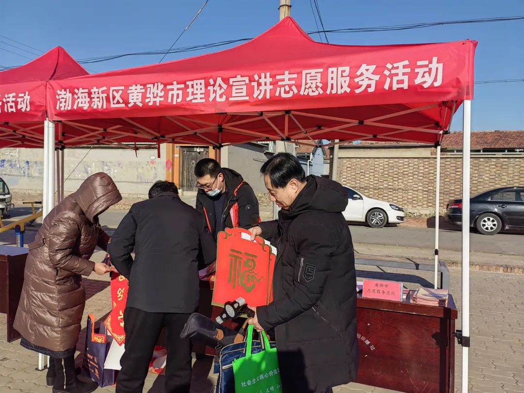 活動中,來自科協(xié)、農(nóng)業(yè)農(nóng)村局、渤海新區(qū)黃驊市文廣旅局、衛(wèi)健局、司法局、滕莊子鎮(zhèn)等單位及紅色朝陽志愿者協(xié)會、白天鵝美發(fā)學(xué)校的志愿者向廣大群眾提供了科學(xué)普及、文化下鄉(xiāng)、健康義診、法律咨詢、暖心慰問、義務(wù)理發(fā)等志愿服務(wù)。面對來咨詢的村民,志愿者們耐心解釋、認(rèn)真講解,配合宣傳資料,全面普及農(nóng)、法、文、衛(wèi)等相關(guān)知識,拓寬村民知識儲備,增強(qiáng)思想道德修養(yǎng),引導(dǎo)大家將這些知識應(yīng)用于實(shí)際生活中,來自實(shí)踐中心的志愿者們在開展理論宣講服務(wù)的同時,還發(fā)放了免費(fèi)春聯(lián),為村民們送上新年祝福。
