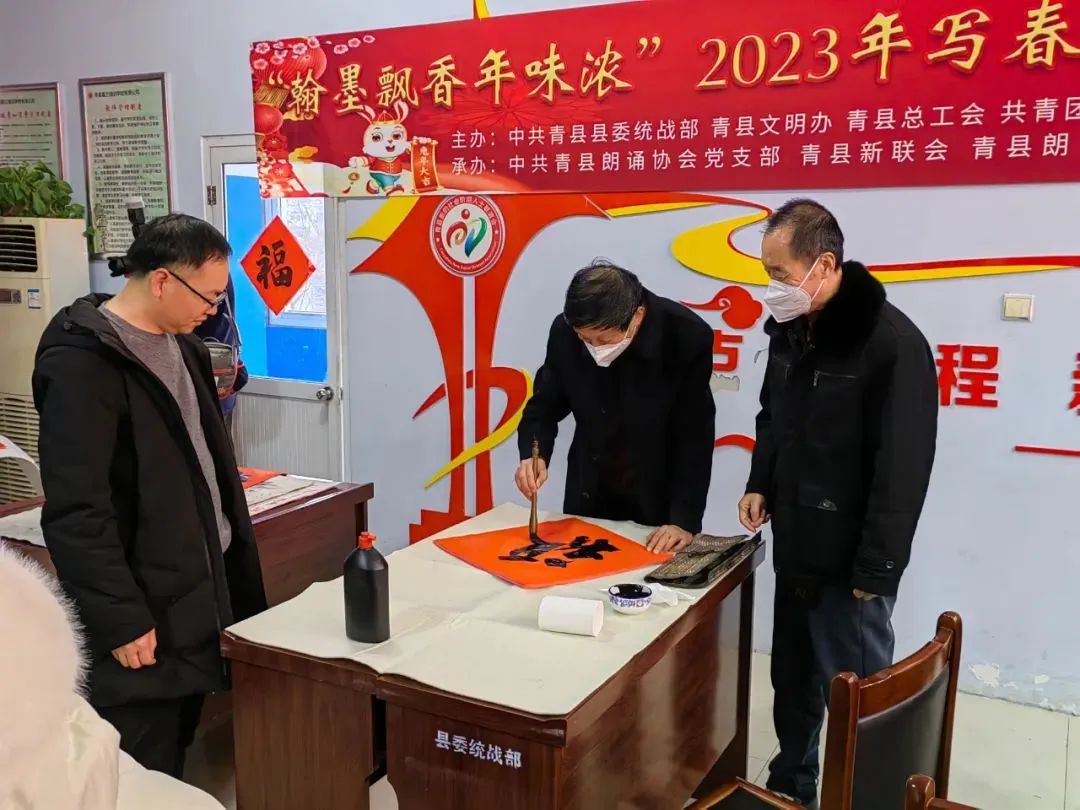 為弘揚中華傳統(tǒng)文化,營造喜慶祥和節(jié)日氛圍,青縣文明辦聯(lián)合中共青縣縣委統(tǒng)戰(zhàn)部、青縣總工會、團縣委、中共青縣朗誦協(xié)會黨支部、青縣新聯(lián)會,在青縣朗誦協(xié)會活動室(新時代文明實踐站),開展青縣新時代文明實踐活動“翰墨飄香年味濃”寫春聯(lián)送福字活動,旨在弘揚傳統(tǒng)優(yōu)秀文化和向善向美的道德風(fēng)尚,大力弘揚社會主義核心價值觀,把辭舊迎新的美好祝福在群眾中傳遞,把黨和政府的溫暖送到群眾心里,營造歡樂祥和的節(jié)日氛圍。