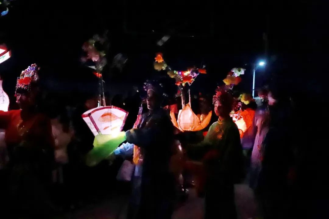晚上7點,燈秧歌隊進行了更具特色的花燈表演,吸引了更多的觀眾欣賞。