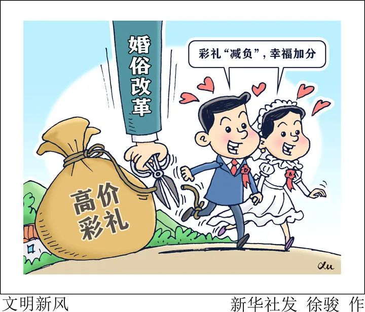 隨著經(jīng)濟快速發(fā)展和社會劇烈變遷,婚俗也發(fā)生巨大變化,一些地方的“天價彩禮”、盲目攀比等婚姻陋習(xí)與現(xiàn)代文明社會形成巨大反差。如何為愛“減負”,讓婚俗與時俱進,各地不斷開展探索。
