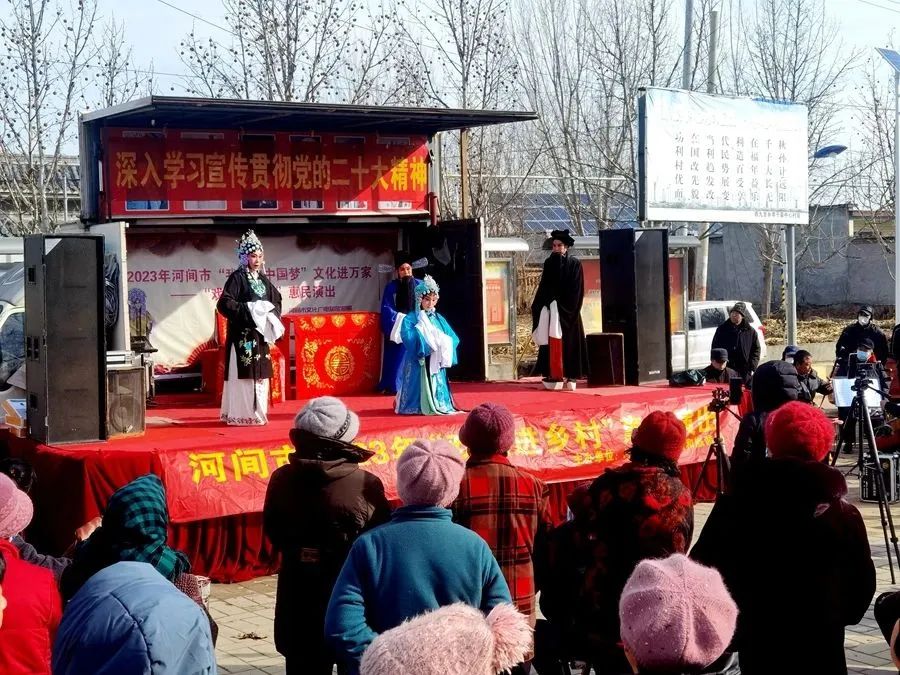 河間市將“戲曲進(jìn)鄉(xiāng)村”作為深入學(xué)習(xí)宣傳貫徹黨的二十大精神、為民服務(wù)的重要載體來抓,采取“戲曲演出+理論宣講”的形式,把黨的創(chuàng)新理論和戲曲文化送到百姓家門口,架起了黨聯(lián)系廣大人民群眾的連心橋。活動(dòng)中,河間市精選了《蝴蝶杯》《喜榮歸》《三娘教子》等河北梆子經(jīng)典曲目,讓百姓在欣賞戲曲的同時(shí),也從中受到了教育。同時(shí),組織退休老干部、鄉(xiāng)村干部、農(nóng)村先進(jìn)典型等人員宣講黨的二十大精神,穿插發(fā)放宣傳單、知識(shí)有獎(jiǎng)問答、唱紅歌等環(huán)節(jié),以群眾喜聞樂見的形式,讓黨的二十大精神“飛入尋常百姓家”。截至目前,已先后在西九吉鄉(xiāng)孝子墓村、北石槽鄉(xiāng)齊會(huì)村、臥佛堂鎮(zhèn)小朱村等地開展活動(dòng)17場(chǎng)。