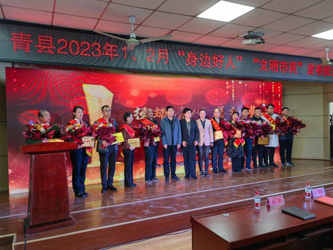 發(fā)布儀式現(xiàn)場(chǎng)揭曉了2023年1、2月青縣“身邊好人”和“文明市民”名單,并為“身邊好人”和“文明市民”代表頒發(fā)榮譽(yù)證書并贈(zèng)送鮮花。