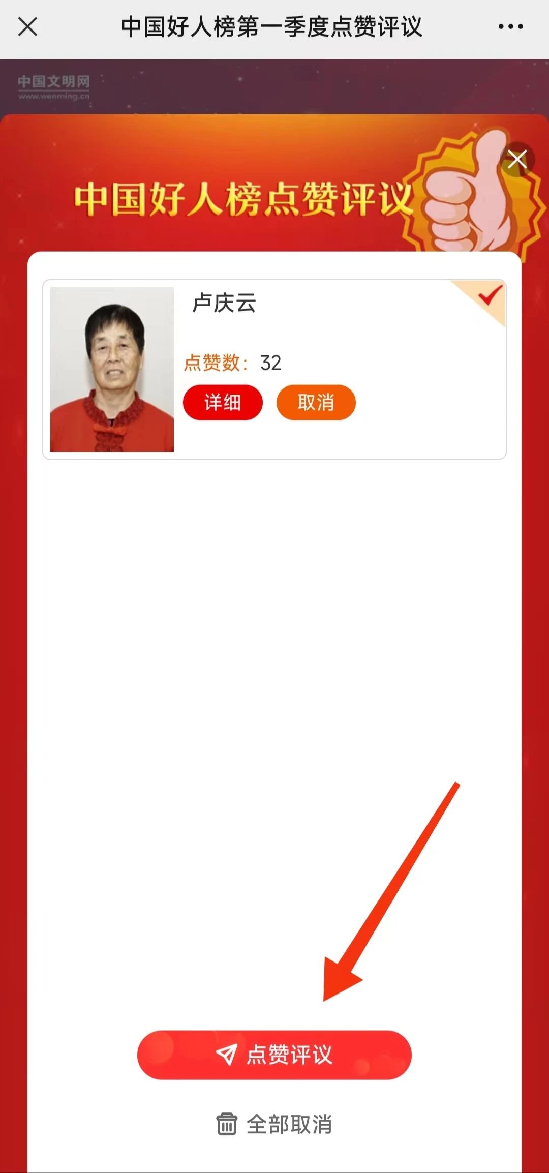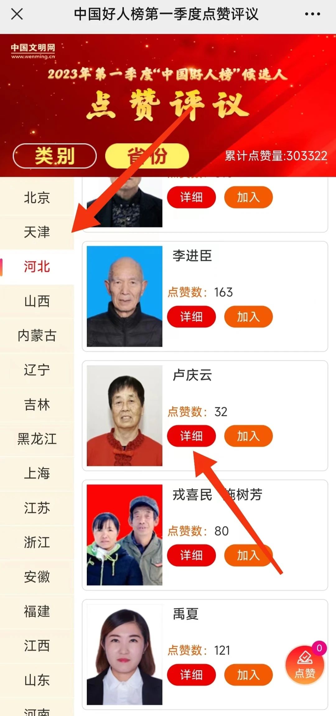 春暖花開,草長鶯飛。身邊好人揚(yáng)正氣,凡人善舉暖人心。即日起,經(jīng)過基層干部群眾舉薦、各地文明辦和相關(guān)單位審核推薦的249名2023年第一季度“中國好人榜”候選人將通過中國文明網(wǎng)進(jìn)行事跡展示,接受網(wǎng)友的點(diǎn)贊評議。此為中央文明辦網(wǎng)上“我推薦我評議身邊好人”活動的環(huán)節(jié)之一,將持續(xù)至2023年4月17日。河北共有9人(組)被推選為第一季度“中國好人榜”候選人。其中,我市盧慶云榜上有名。