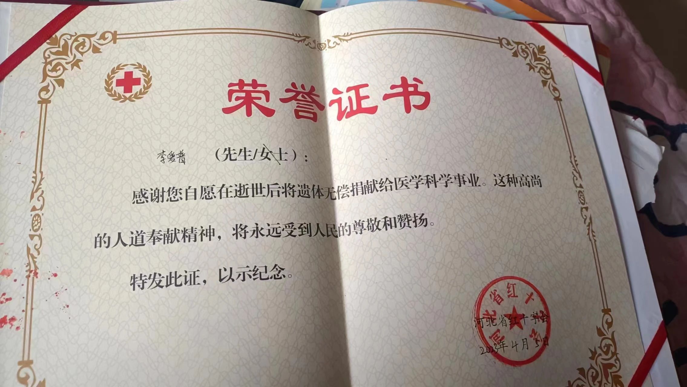 李愛普的愛人陳立華說,他們一家住在獻縣縣城,李愛普是一名退伍軍人。李愛普生前是個熱心腸,只要身邊的人有需要,他準會過去幫忙。10多年前,李愛普偶然聽朋友說起遺體捐獻的事,他就記在心上了。后來,李愛普回家和陳立華商量簽署遺體和人體器官捐獻志愿書的事。李愛普說,人去世后,還能把自己的器官捐給有需要的人,給別人帶來生的希望,即使人體器官不能用,遺體還能用于醫(yī)學研究,這是多么有意義的一件事。