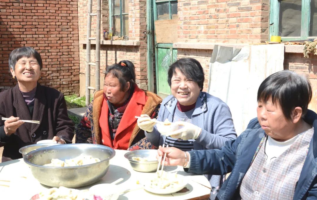 ▲蔣淑華(右二)和蘇麗芝(左二)一起吃餃子