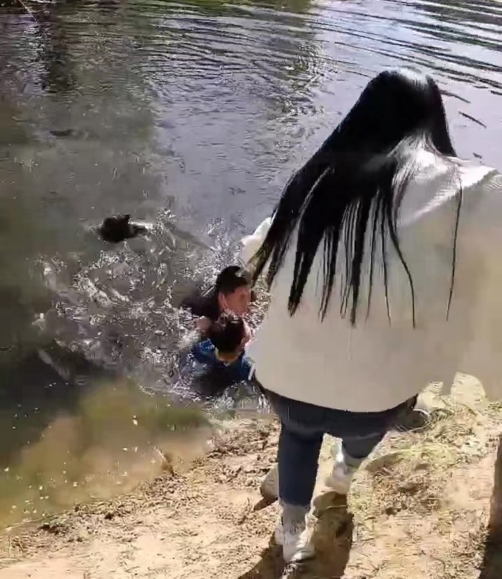 因施救及時,落水男孩并無大礙。得知消息的孩子家人從不遠(yuǎn)處趕了過來,并將孩子帶回家中。