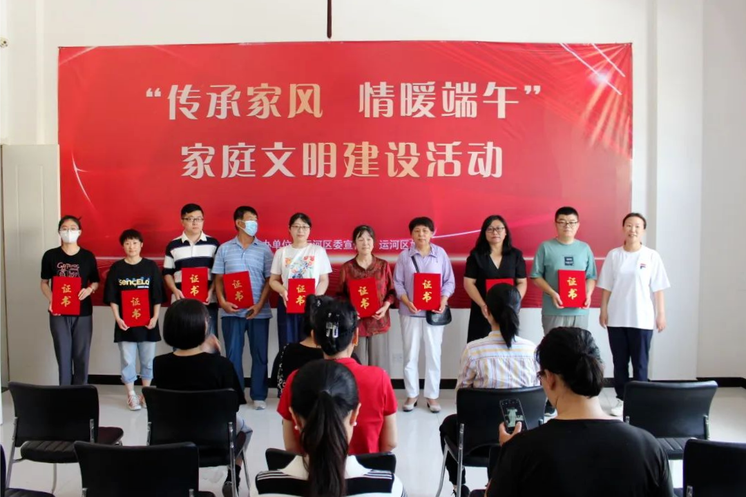 為進(jìn)一步培育和踐行社會主義核心價(jià)值觀,弘揚(yáng)中華民族家庭美德和家風(fēng)文化,推動形成愛國愛家、向上向善、共建共享的社會主義家庭文明新風(fēng)尚。在端午節(jié)來臨之際,運(yùn)河區(qū)委宣傳部、區(qū)婦聯(lián)在區(qū)新時(shí)代文明實(shí)踐中心開展了“傳承家風(fēng) 情暖端午”家庭文明建設(shè)活動,最美家庭、文明市民、優(yōu)秀巾幗志愿者代表及各鎮(zhèn)辦婦聯(lián)工作負(fù)責(zé)同志等近30人參加。