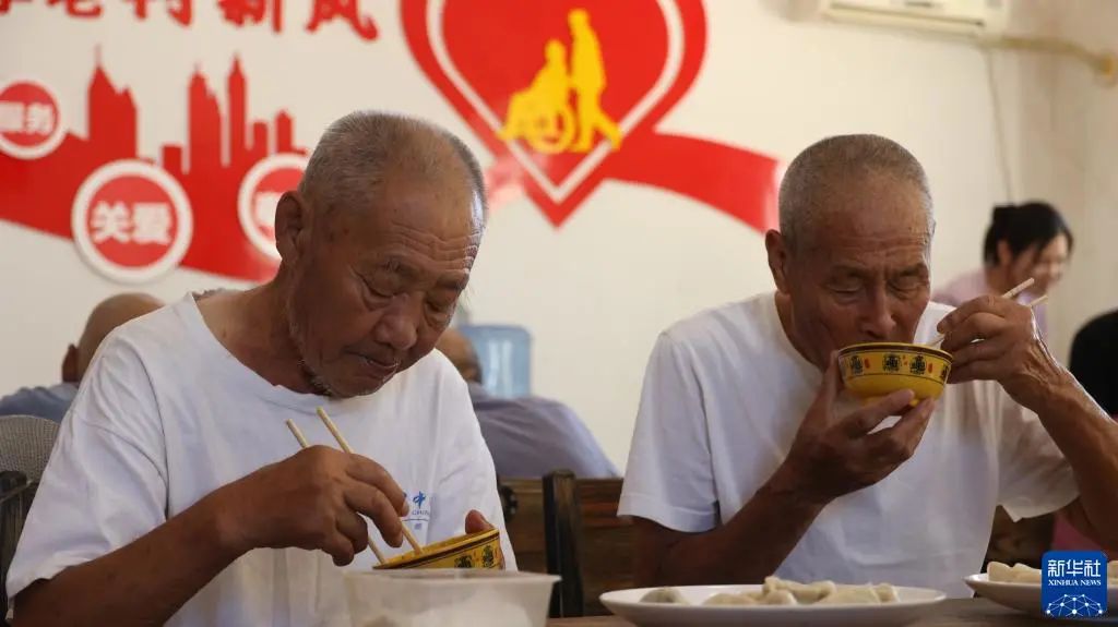 8月22日,老人在青縣曹寺鎮(zhèn)曹寺村的孝老食堂用餐。
