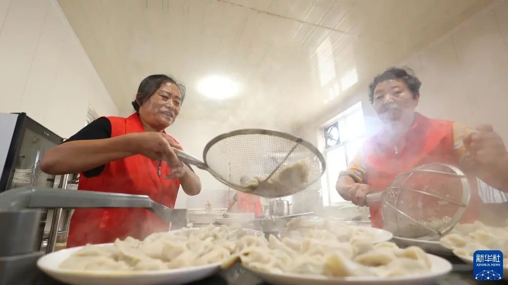 8月22日,青縣金牛鎮(zhèn)大鵓鴿留村孝老食堂的志愿者準(zhǔn)備餐食。