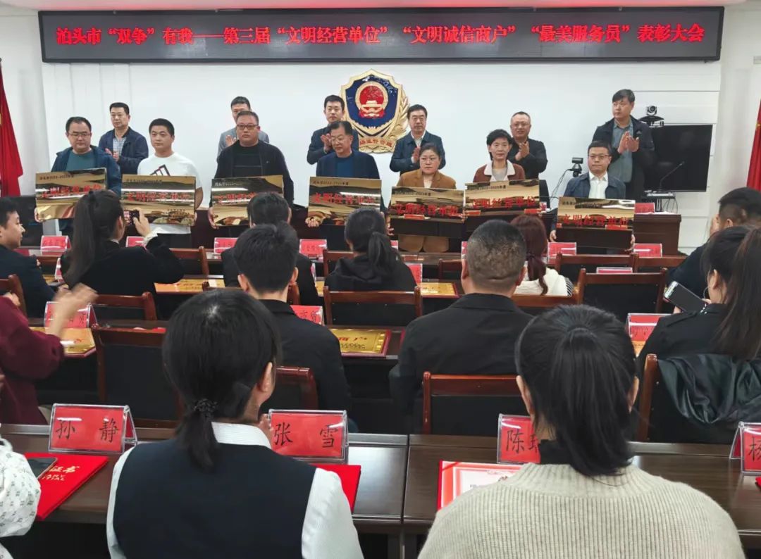 會上宣讀了《泊頭市文明辦、泊頭市市場監(jiān)管局、泊頭市發(fā)展改革局關(guān)于表彰“雙爭”有我——第三屆“文明經(jīng)營單位”“文明誠信商戶” 和“最美服務(wù)員”的決定》,對科塵環(huán)保設(shè)備有限公司、中浩機械制造有限公司等15個經(jīng)營單位,前馮誠信超市、小掌柜餐飲有限公司等30家商戶和馮霄、張珂等30位服務(wù)員進行表彰,分別授予“文明經(jīng)營單位”“文明誠信商戶”和“最美服務(wù)員”稱號。