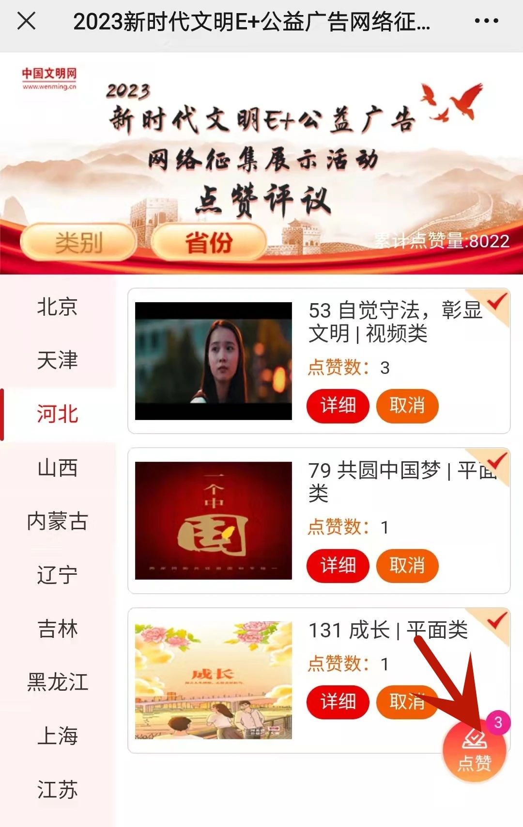 點(diǎn)贊方式:大家可直接掃描下方二維碼或點(diǎn)擊左下方“閱讀原文”進(jìn)入點(diǎn)贊評(píng)議頁面,為河北的公益廣告作品點(diǎn)贊。