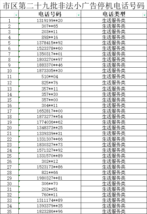 推進非法小廣告常態(tài)化治理,我市持續(xù)發(fā)力。今天,市區(qū)第二十九批共35部電話號碼被強制停機。截至目前,被停機的非法小廣告電話號碼達到2031部。其中,對生活服務類非法小廣告電話號碼實行臨時停機處理,待機主接受相應的行政處罰后,由相關(guān)責任單位進行復機。對涉嫌制販假證、假票據(jù)、涉黃涉黑等非法小廣告的,由公安機關(guān)調(diào)查確認,進行永久停機處理。