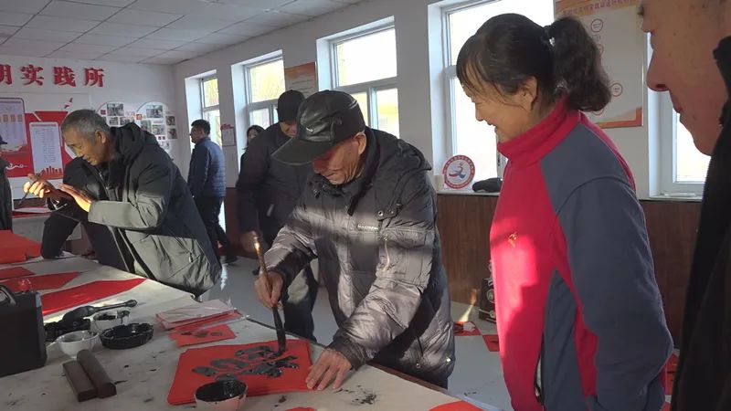 在小許莊村黨群服務中心內(nèi),書法愛好者們揮毫展藝,一幅幅充滿美好寓意的春聯(lián)和福字躍然紙上,字里行間透出喜慶祥和。