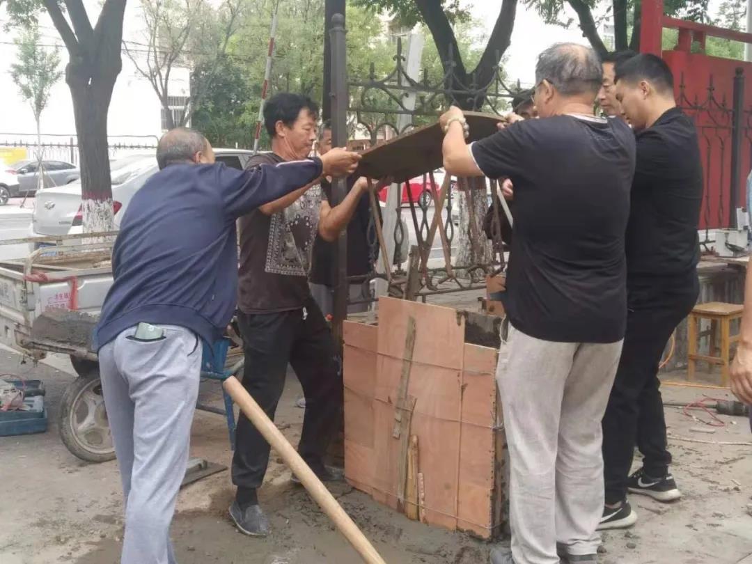 安門牌那天,不少居民自發(fā)來幫忙。大家有的出工具,有的出力,一起拌水泥、壘底座、刷油漆。