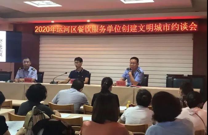 為深化文明城市創(chuàng)建工作,8月11日,運河區(qū)市場監(jiān)管局組織轄區(qū)內(nèi)50余家大、中型餐飲服務(wù)單位召開文明城市創(chuàng)建工作約談會。