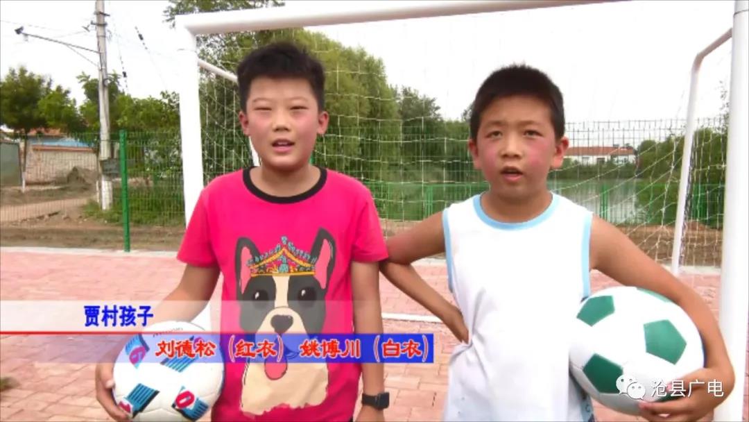 賈村孩子劉德松(紅衣) 姚博川(白衣):這個足球場建的很好,我們玩的很高興!