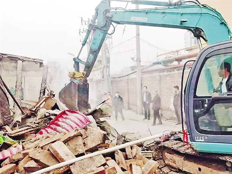 南大街辦事處拆除鐵西大街祁孟莊路段“違建”,小趙莊鄉(xiāng)拆除蔡莊子社區(qū)侵占公共區(qū)域的棚欄棚亭……連日來,新華區(qū)出動(dòng)作業(yè)車輛20余輛,重點(diǎn)對(duì)蔡莊子伙巷、物華市場(chǎng)、千童大道附近、東風(fēng)路道東東側(cè)、慧佳幼兒園以 及鐵西大街過水橋道路兩側(cè)等區(qū)域內(nèi)搭建接建、彩鋼違建、圈占圍欄等設(shè)施進(jìn)行集中拆除。目前,新華區(qū)已經(jīng)累計(jì)拆除“違建”1.3萬平方米。