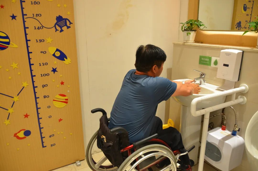 圖為肢殘朋友體驗無障礙衛(wèi)生間