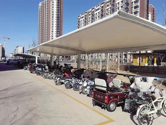 雨天,天成明月州東區(qū)的多輛電動車正常充電,有了車棚的保護(hù),居民不再擔(dān)心電動車的安全問題?!斑@兩年小區(qū)電梯加裝了阻車器,想上樓也上不去,所以都在樓下充電。”一位居民說,人們已經(jīng)習(xí)慣了這種充電模式。