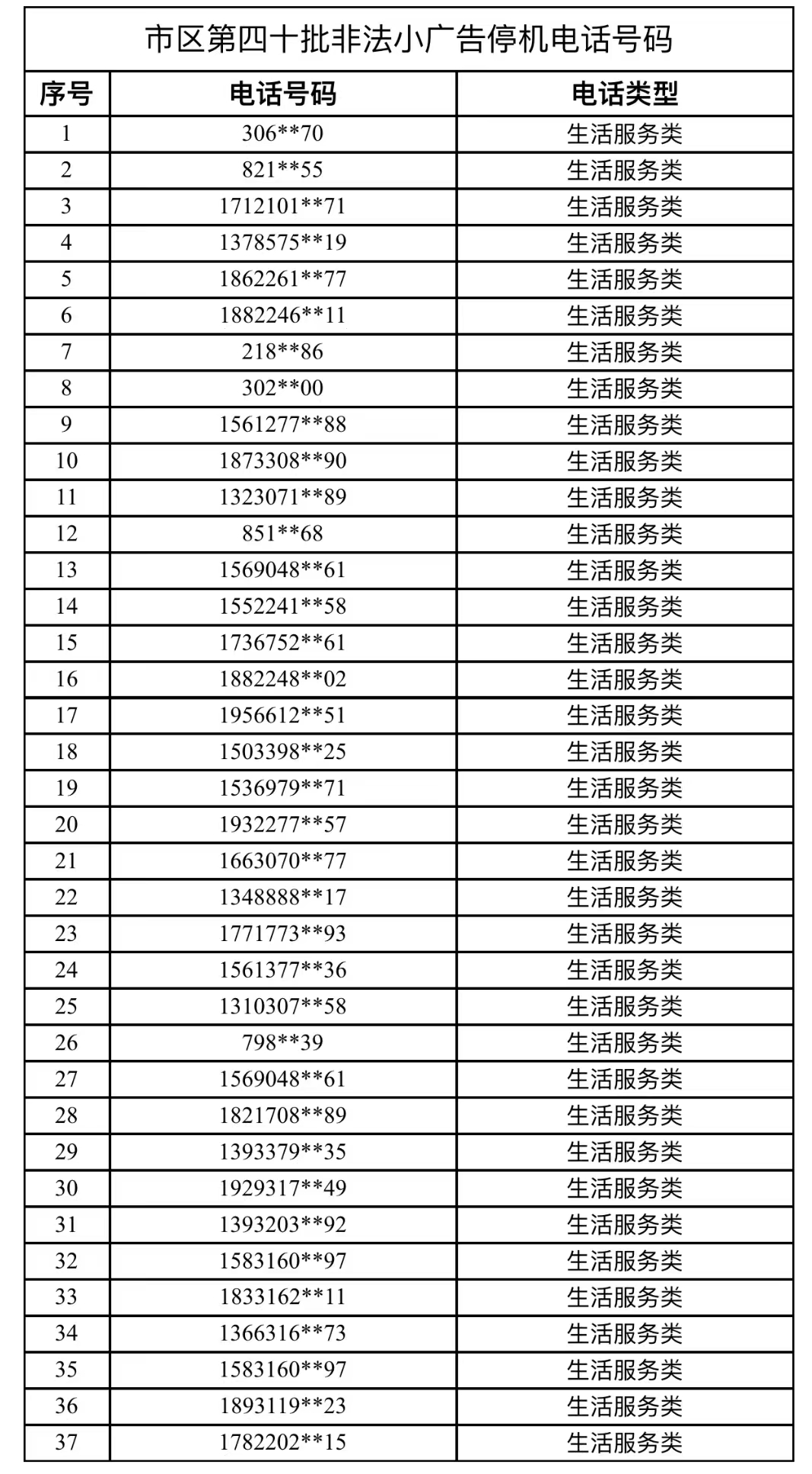 市城管局(負(fù)責(zé)全市生活服務(wù)類非法小廣告電話號(hào)碼的處罰)