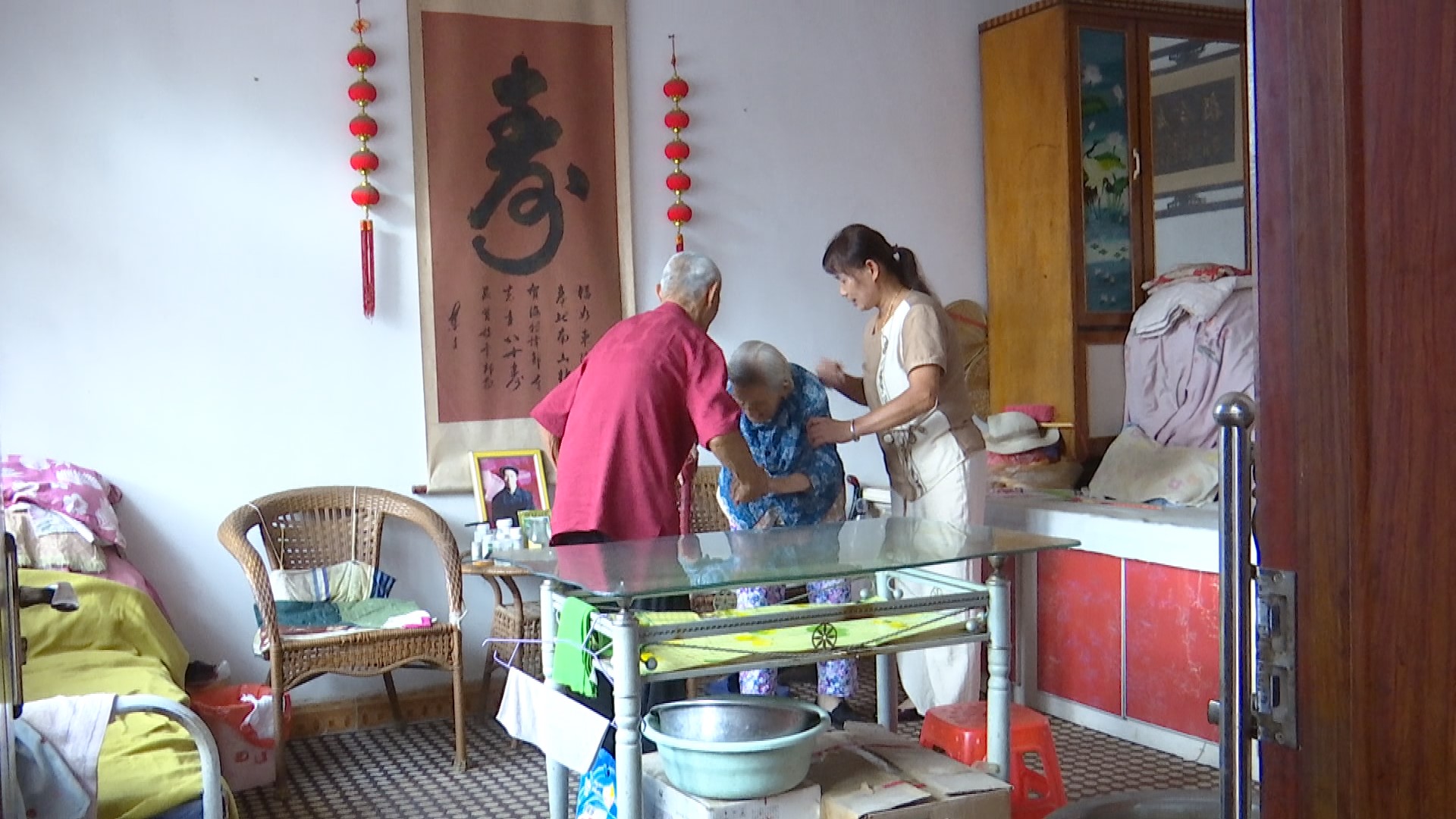 王洪芮的婆婆從小身患?xì)埣玻?015年又得上了帕金森,王洪芮便一直精心照顧著婆婆。2018年5月,公公得了腦動脈血管瘤癱瘓在床,本就不富裕的家境因?yàn)榻o老人們治病更加雪上加霜,為了讓丈夫安心工作,王洪芮主動承擔(dān)起了照顧公婆和孩子的任務(wù)。王洪芮每天起早貪黑,給老人喂飯、喂水、喂藥、擦洗身體,幫助老人換洗衣服被褥、清理大小便、曬太陽,每當(dāng)收桑椹的季節(jié),她還要抽空去地里干農(nóng)活,忙完回家繼續(xù)照顧公婆,一個人扛起照顧老人的重?fù)?dān),書寫著“孝”的樸實(shí)無華。